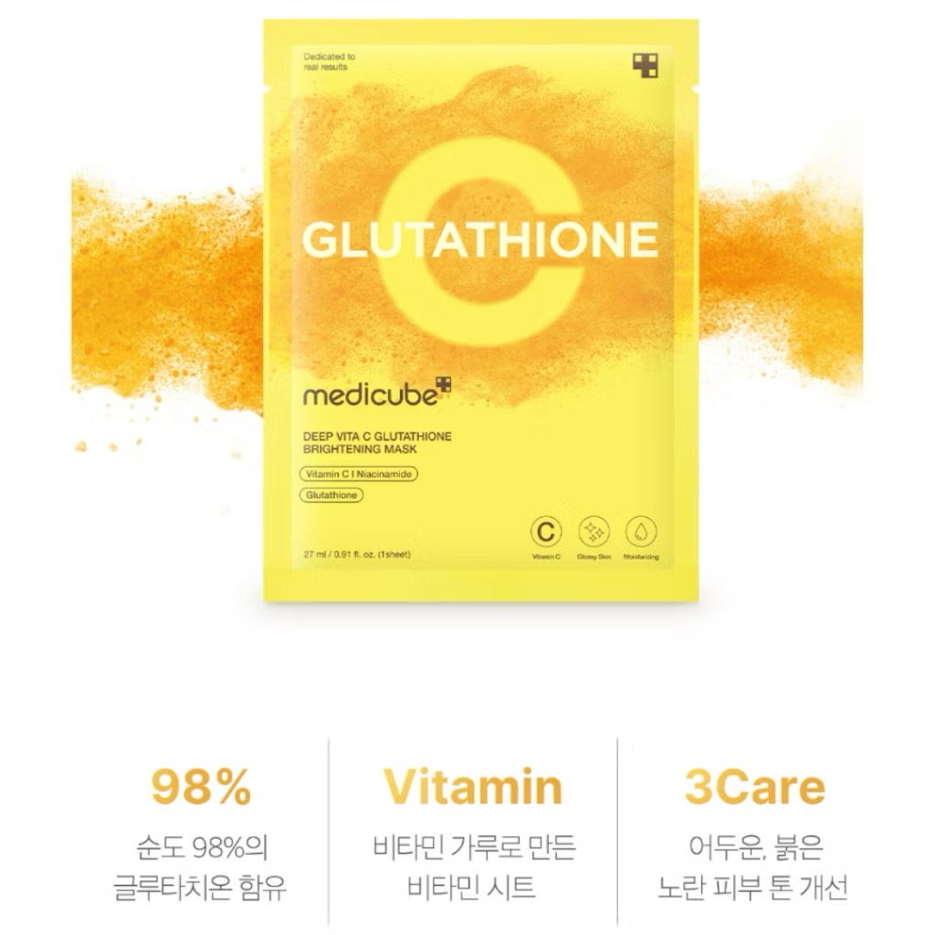 A Deep Vita C Glutathione Brightening Mask da Medicube é uma máscara facial desenvolvida para devolver luminosidade e vitalidade à pele. Combinando o poder da Vitamina C, Niacinamida e Glutationa, oferece ação antioxidante intensa, ajudando a clarear manchas, uniformizar o tom e revitalizar peles cansadas.